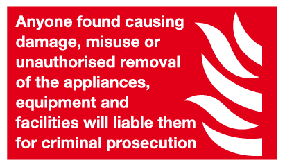 Fire equipment sign reminding persons not to tamper, take or misuse the equipment.