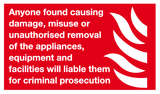 Anyone found causing damage sign