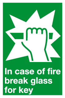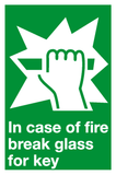 Safe conditions safety sign in case of fire break glass for key. 90 x 140mm.