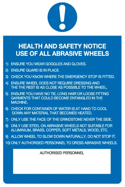Health and Safety notice using of all abrasive wheels sign
