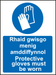 Rhaid gwisgo menig amddiffynnol welsh sign