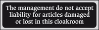 The management do not accept liability for articles damaged or lost in this cloakroom