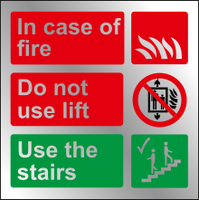 Do not use lift sign - Prestige sign In case of fire Do not use lift Use the stairs sign