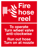 Fire hose reel sign instructions sign