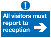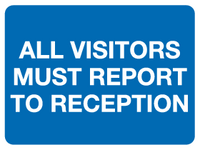 All visitors must report to reception (up) sign
