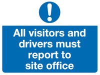 All visitors and drivers must report to site office sign