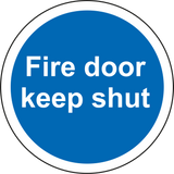 fire door keep shut Circular cut out signs sold in packs of 50 or 100