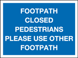 Footpath closed pedestrians please use other footpath