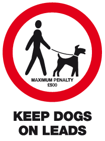 Keep dogs on leads maximum penalty £500 sign